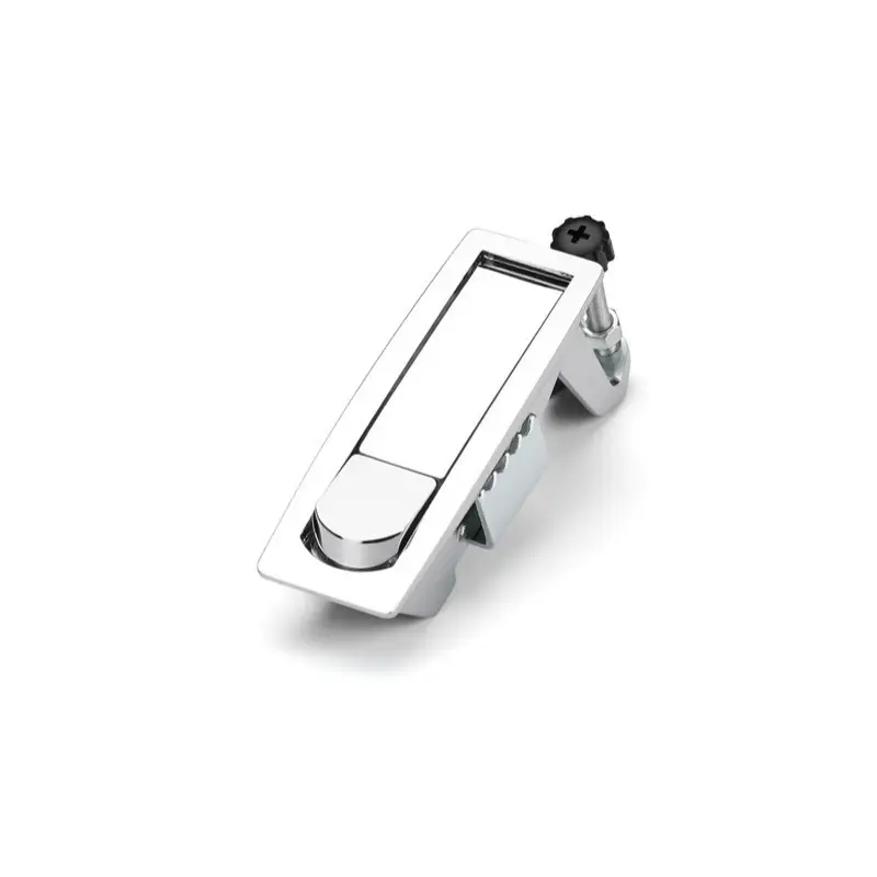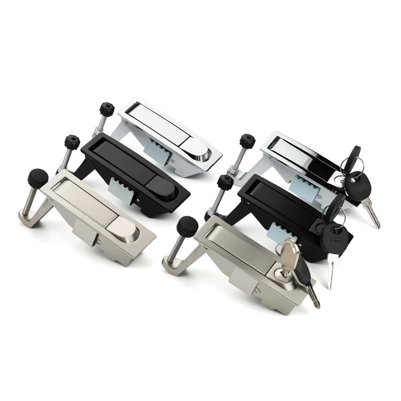 Välj mellan låskärna eller låsfria versioner baserat på säkerhetskrav. För kritisk utrustning med höga säkerhetsbehov rekommenderar vi modeller med låskärna. Verifiera låskompatibilitet med skåpdörrtjocklek. Välj material som är lämpliga för den omgivande luftfuktigheten, korrosionsnivåerna och den erforderliga låsstyrkan. Aluminiumlegeringsversionen är lämplig för normala miljöer, medan versionen av rostfritt stål är bättre lämpad för tuffa förhållanden. Ytbehandlingarna av aluminiumlegering finns i svart och krom. Det rostfria stålet har en borstad yta.