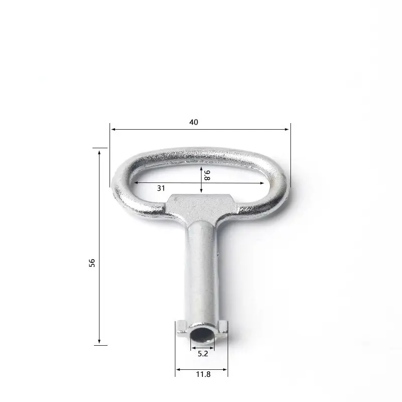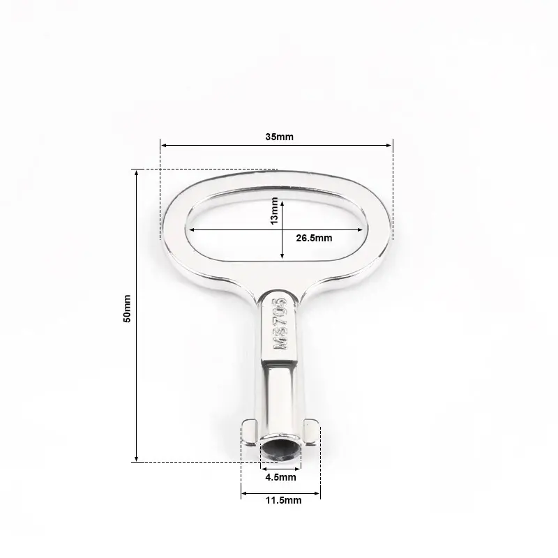 Nickelpläterad aluminium dubbelbitnyckel: Övergripande dimensioner 35 × 50 mm, låscylindercenter diameter 4,5 mm, låscylindercenter + dubbel tänder diameter 11,5 mm.