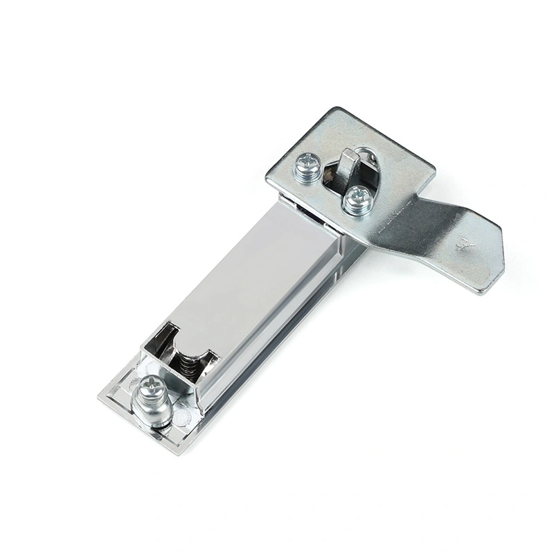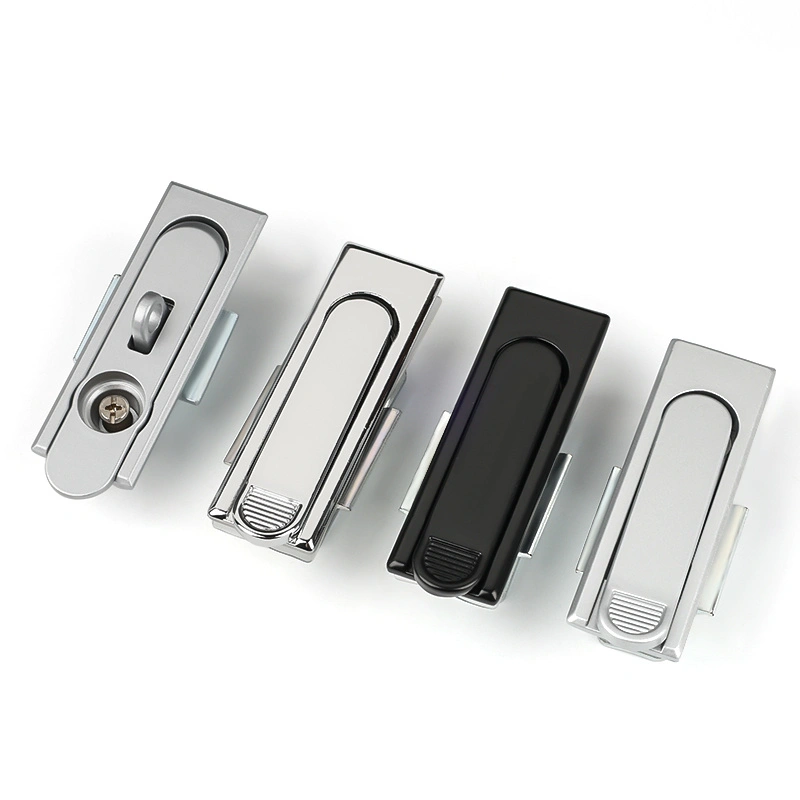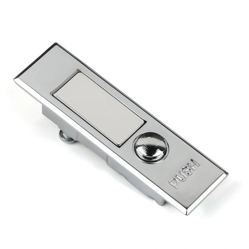 Funktionen för skåpdörrens platt -lås är att möjliggöra snabb och säker öppning och stängning av skåpdörren. Låset är utrustat med en knappomkopplare som är lätt att använda och lämpligt för industriella miljöer där handskar måste bäras. Den inre fjädern gör det möjligt för låstungan att automatiskt återställa, så ingen ytterligare drift krävs vid stängning av skåpdörren.