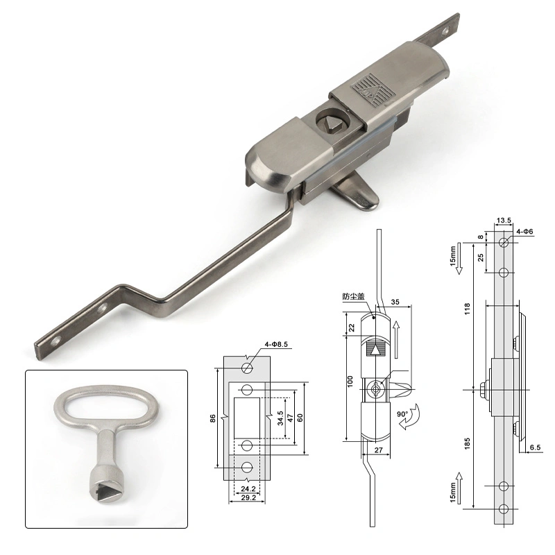 Som ledare med många års expertis med skåplås, presenterar Yitai Lock det rostfria stålförbindelsestånglåset, konstruerat för extrema miljöer inklusive kemiska växter, marina plattformar och kärnkraftsanläggningar. MS820 Rostfritt stål Connecting Rod Lock är ett högsäkerhetsdörrsystem specifikt utformat för rittalskåp, elektriska kapslingar och olika typer av skåp.
