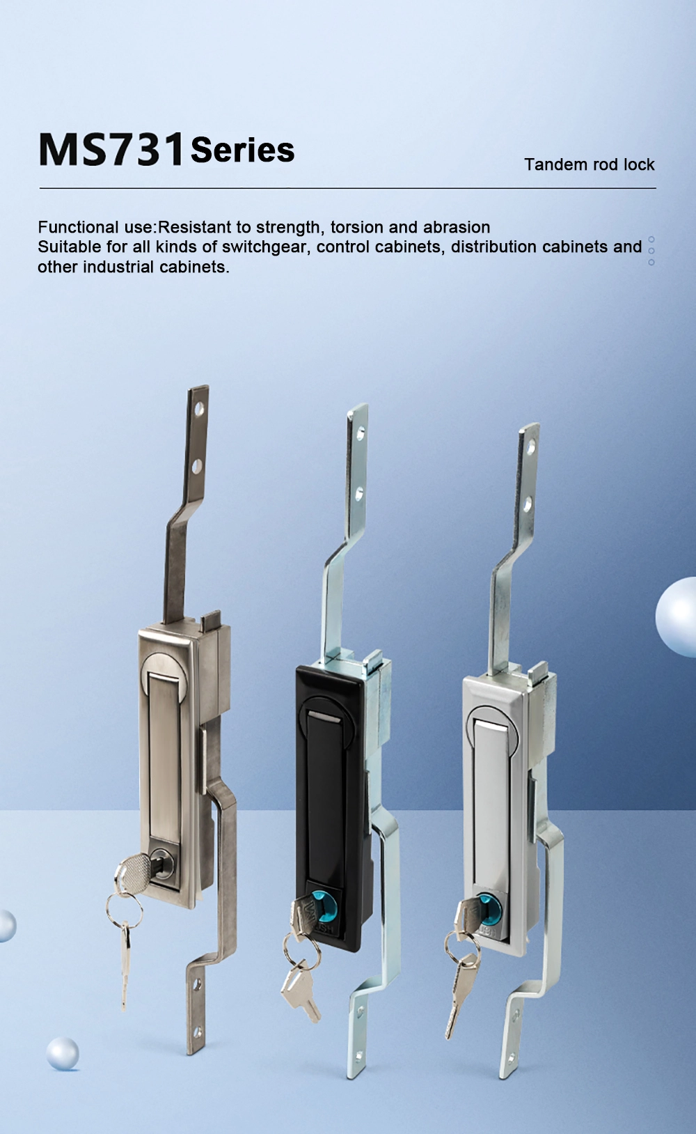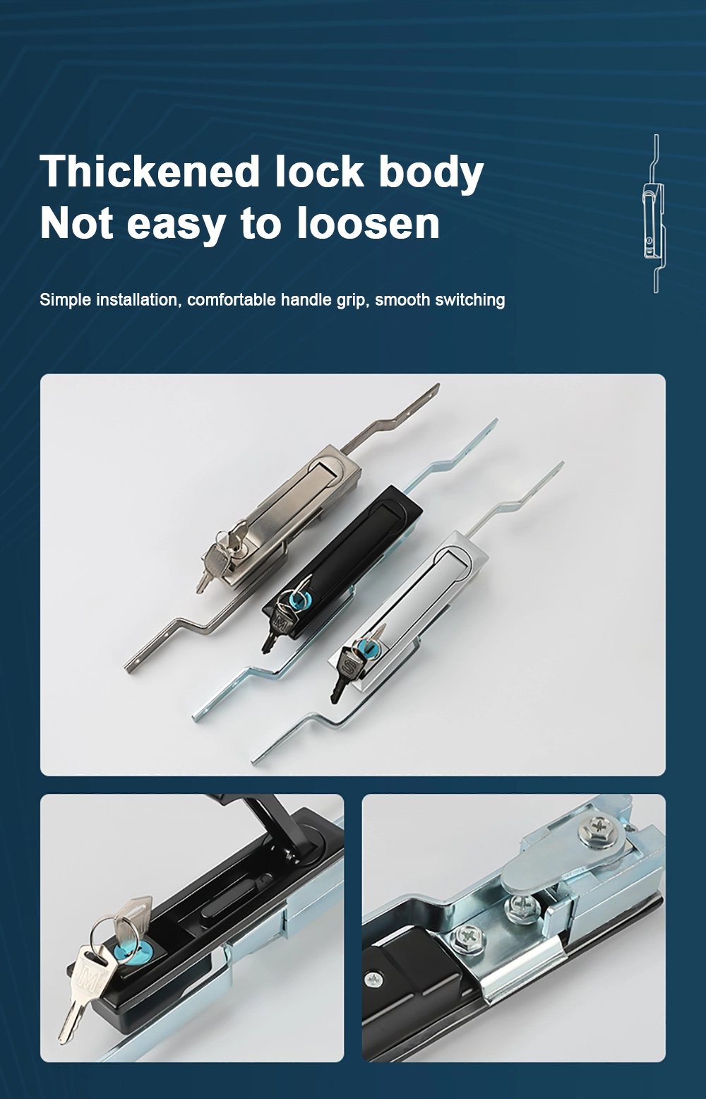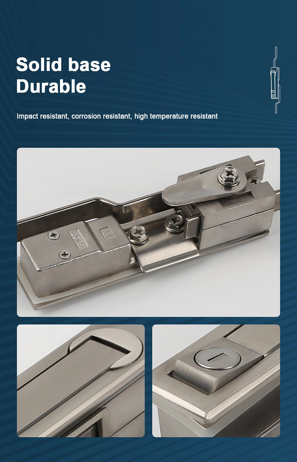Lämplig för skåp, kommunikationsbasstationer, etc. Dörrlås i rostfritt stål är sondsäkra, dammsäkra och vattentäta.