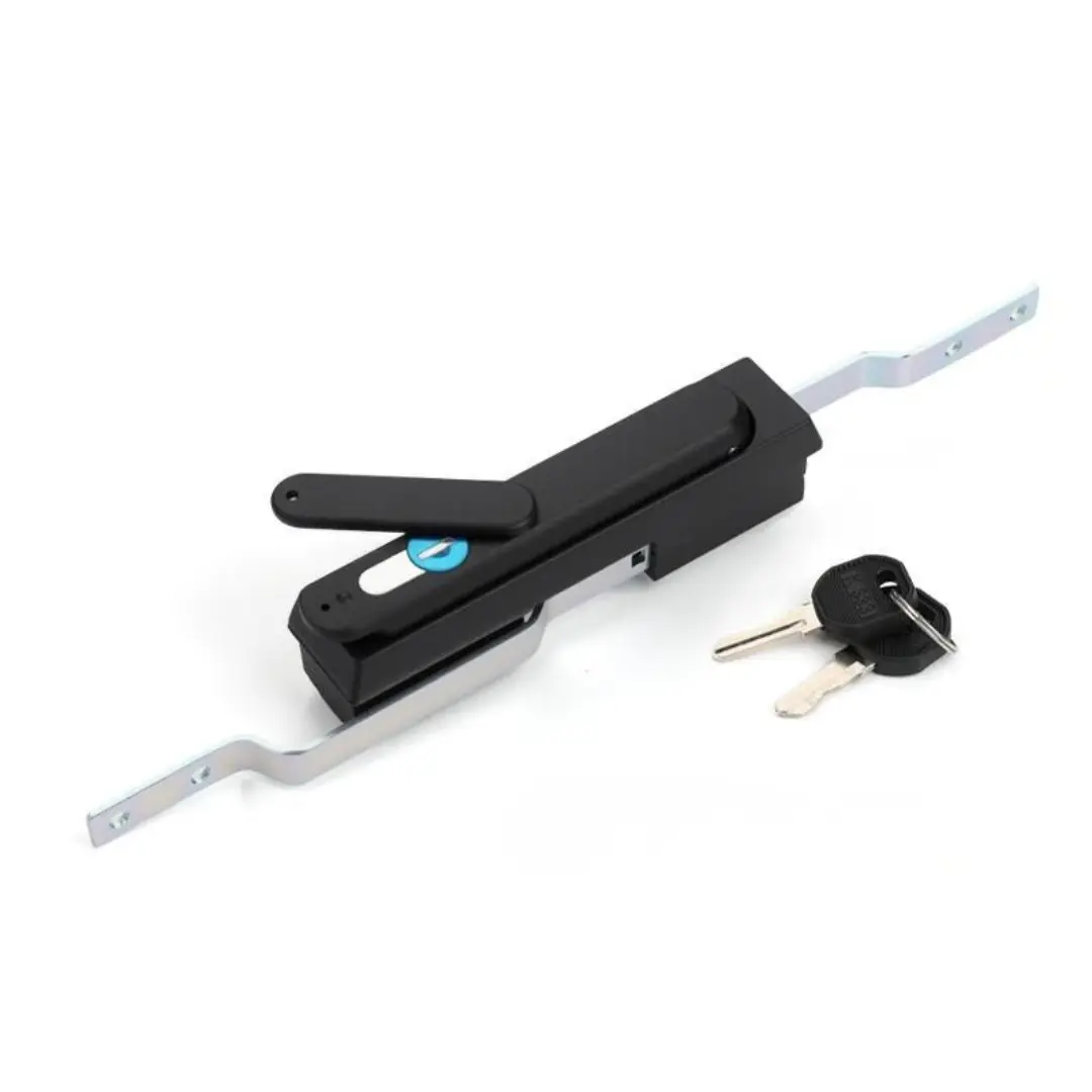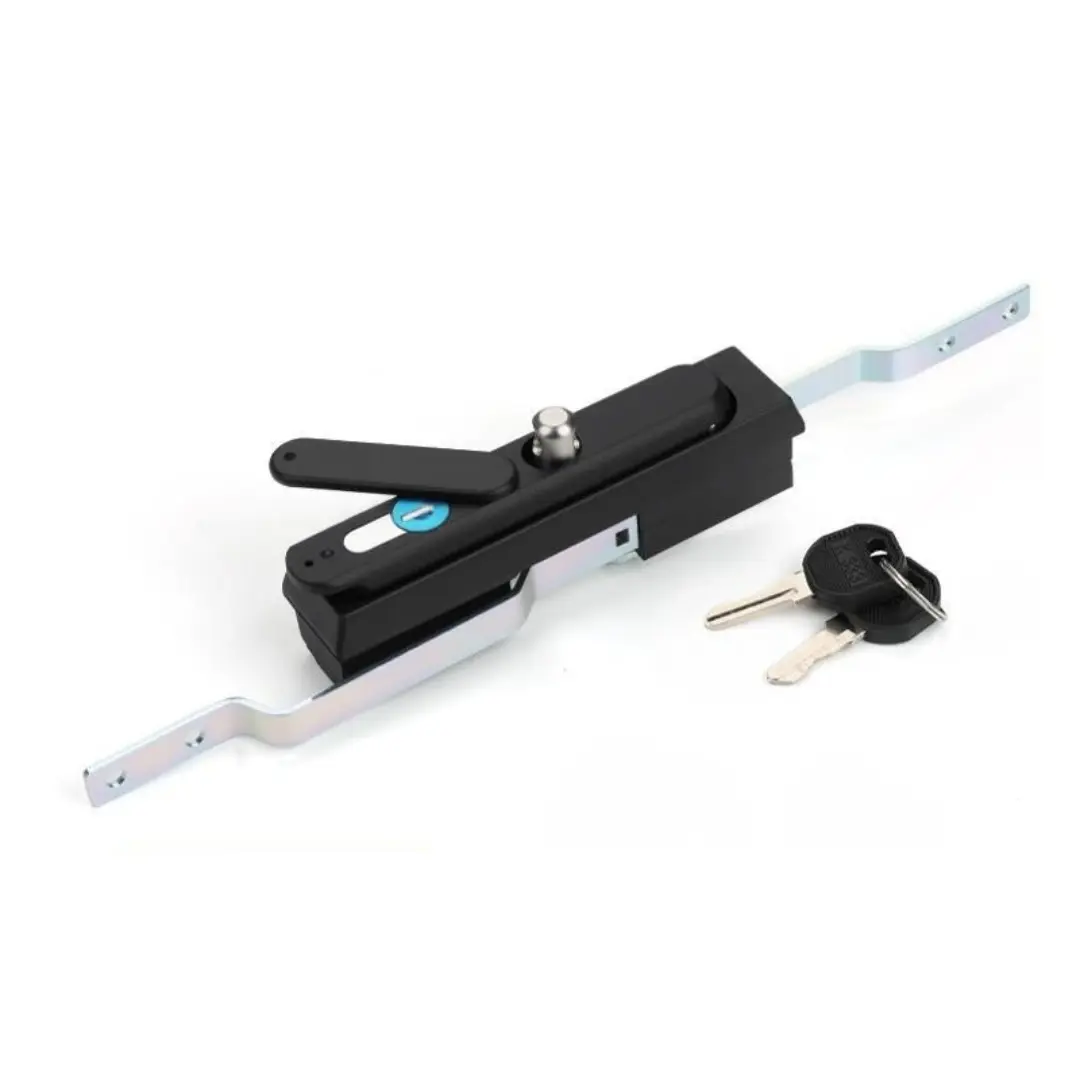 Yitai Lock är en professionell tillverkare av vertikala länkdörrlås. Dessa lås används i industriskåp. Det vertikala länkdörrlåset är ett skåpdörrlås som använder flera lås med bara en manöverpunkt. Detta gör den perfekt för industriskåpsdörrar som behöver tätas eller uppfylla höga säkerhetsstandarder. Handtaget att vrida på handtaget sätter igång rörelsen av en serie spakar, som följaktligen kopplar in eller ur en mängd övre och nedre låspunkter.